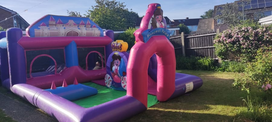 This is our wow factor inflatable play centre which is a great hit with the princess loving children. It includes a 4 in 1 play extravaganza consisting of a slide, air jugglers, bouncy castle and a ball pool. You can also add on one of our soft play packages to make it even more amazing! The bonus to this inflatable bouncy castle centre is the low ceiling height! Making it very appealing to all them venues with the low ceilings! But please be sure to measure up to make sure it fits in length/width. This inflatable play centre bouncy castle is only suitable for the younger children.