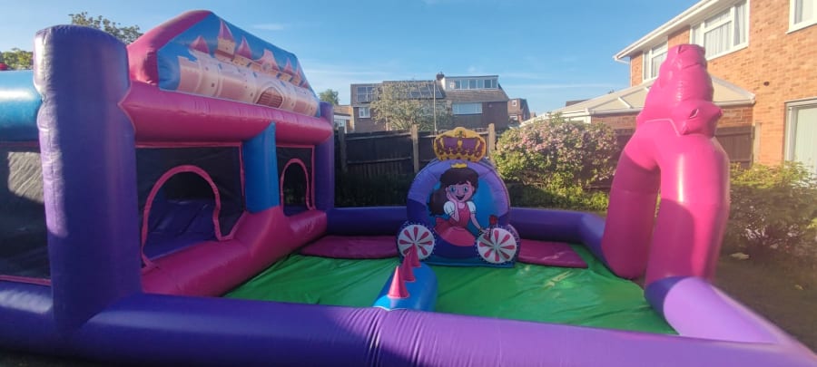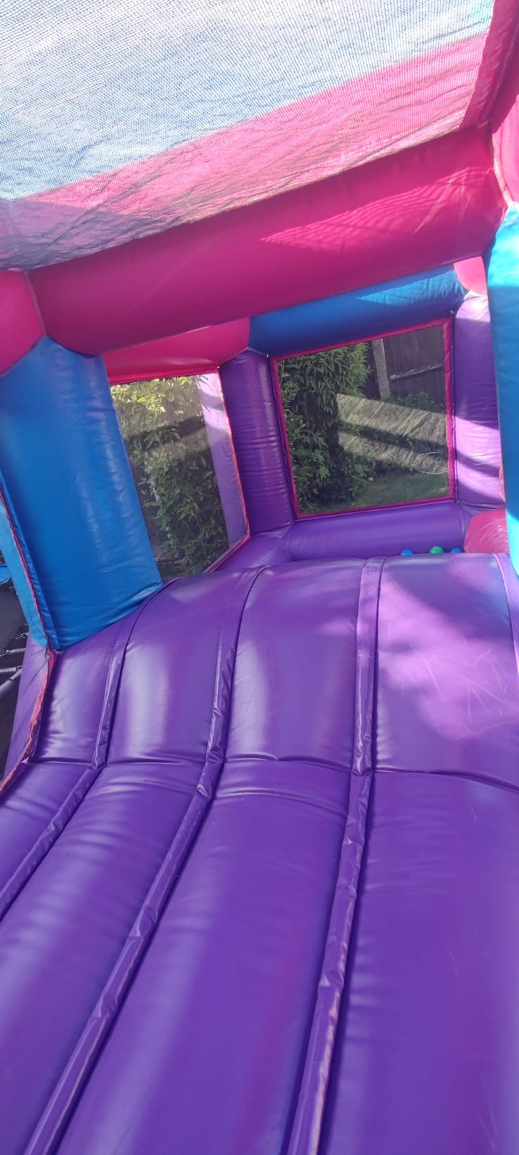 This is our wow factor inflatable play centre which is a great hit with the princess loving children. It includes a 4 in 1 play extravaganza consisting of a slide, air jugglers, bouncy castle and a ball pool. You can also add on one of our soft play packages to make it even more amazing! The bonus to this inflatable bouncy castle centre is the low ceiling height! Making it very appealing to all them venues with the low ceilings! But please be sure to measure up to make sure it fits in length/width. This inflatable play centre bouncy castle is only suitable for the younger children.