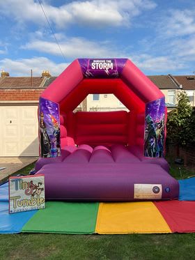 This is our 11x15 Fortnite bouncy castle which is a great hit with the children. Given its size it will fit in most halls and gardens however please measure first to ensure it will fit. This castle has a height of 9ft so please ensure ceilings are over 9.5ft. This bouncy castle is only suitable for children.