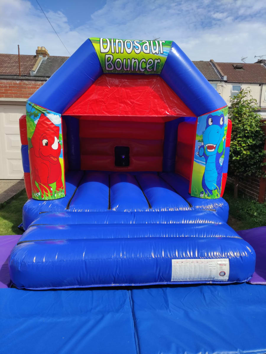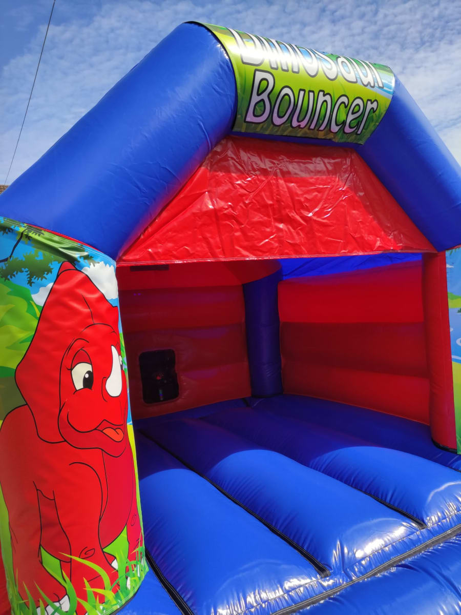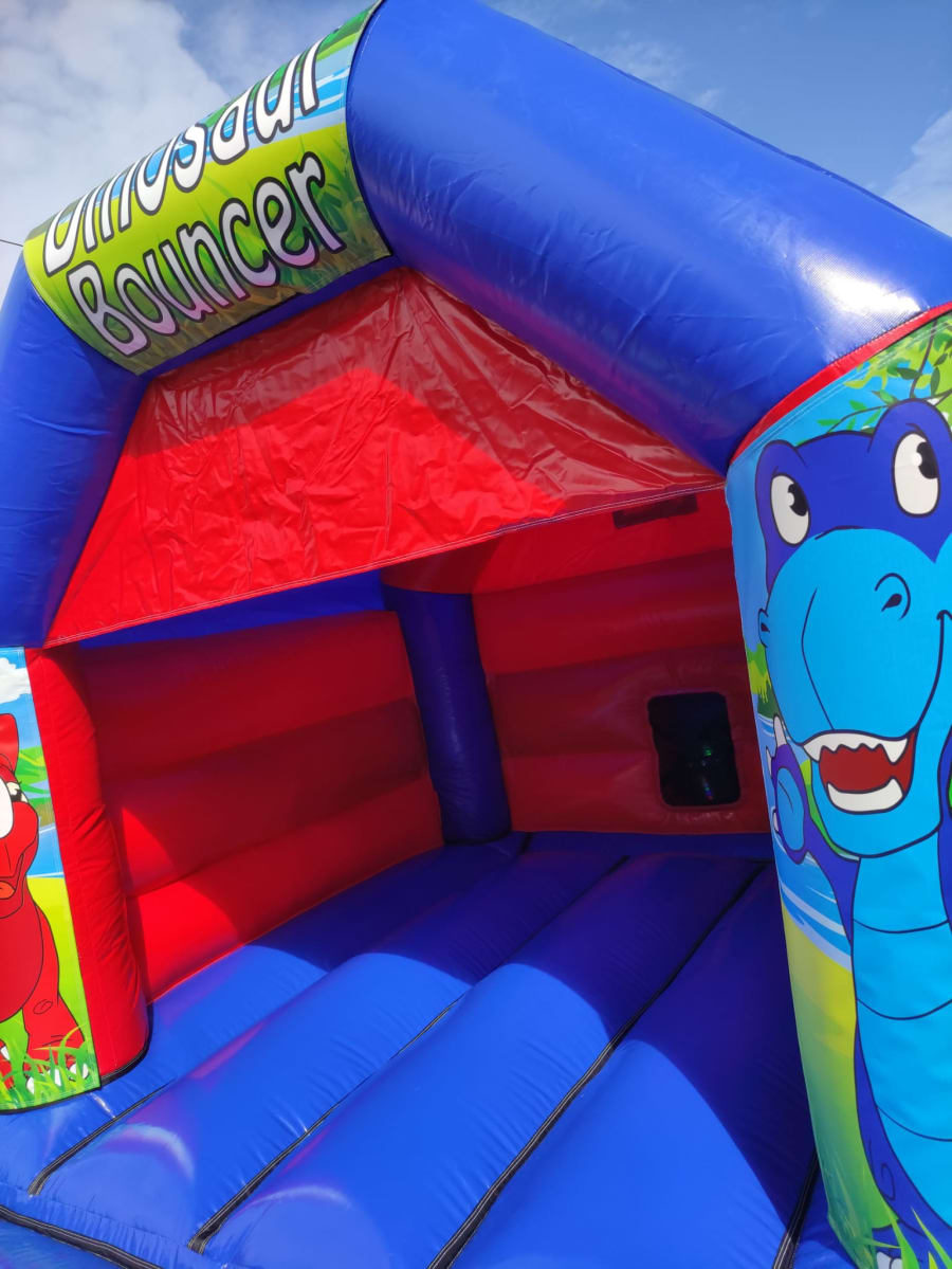 This is our 11x15 Dinosaur Red bouncy castle which is a great hit with the children. Given its size it will fit in most halls and gardens however please measure first to ensure it will fit. This castle has a height of 9.5ft so please ensure ceilings are over 9.5ft. This bouncy castle is only suitable for children.