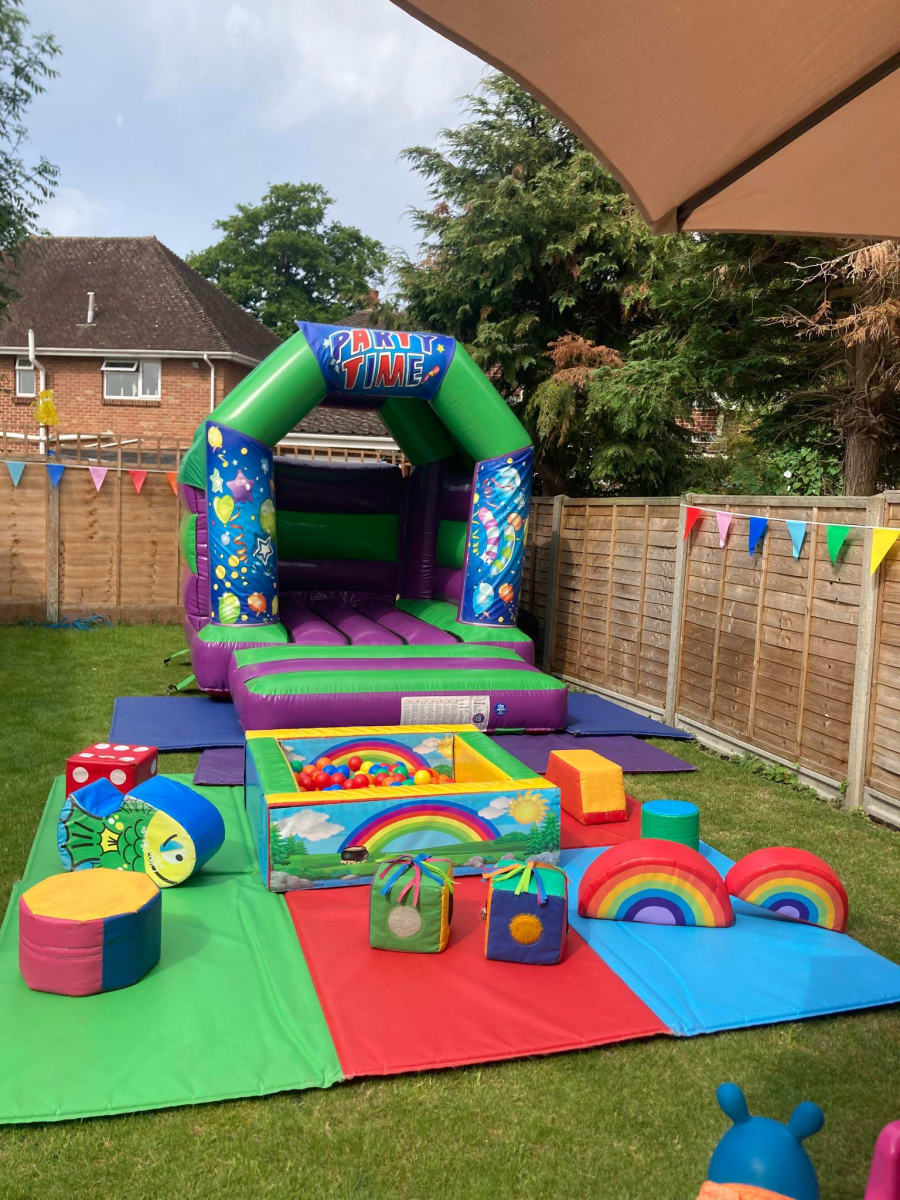 This package includes the 11x8x9 bouncy castle (choose your theme from our drop down menu), matted area, ball pool and balls, selection of shapes and rockers. Please not items may vary from the photo as we have many soft play products, but will always be the same quantity.