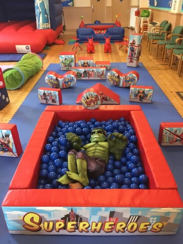 This is our superhero bouncy castle and soft play package which is a perfect to match any superheroes party!